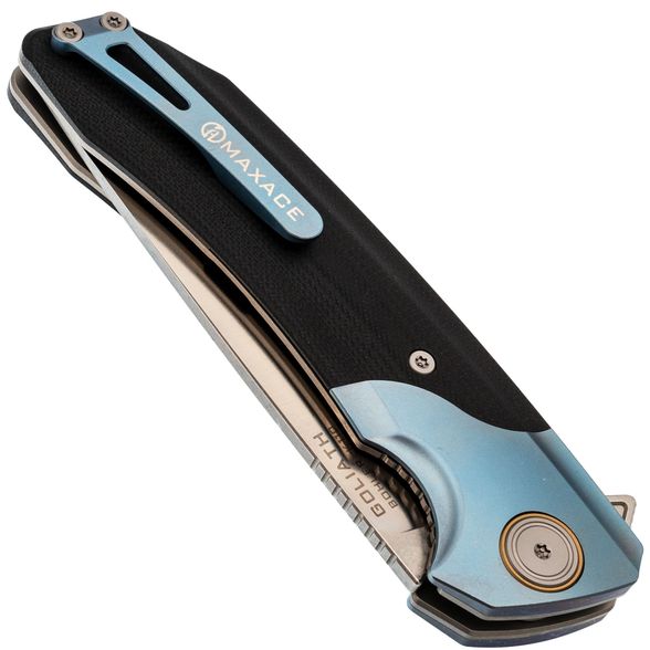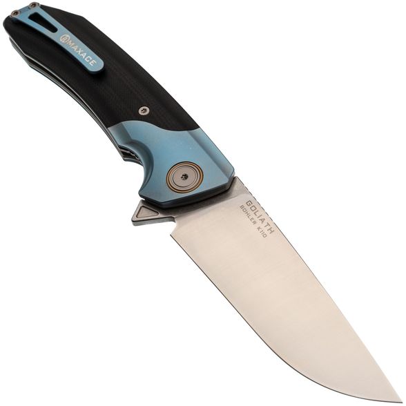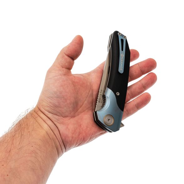 Maxace Goliath создан для тех, кто ценит крупные, но при этом изящные инструменты. Название говорит само за себя: это настоящий гигант среди складных моделей, но при этом он не выглядит грубым - дизайн прост и аккуратен. Такой формат отлично подойдёт любителям больших клинков, которые при этом хотят универсальный и надёжный вариант для повседневного ношения.
