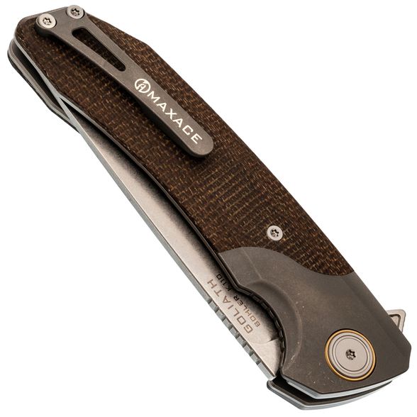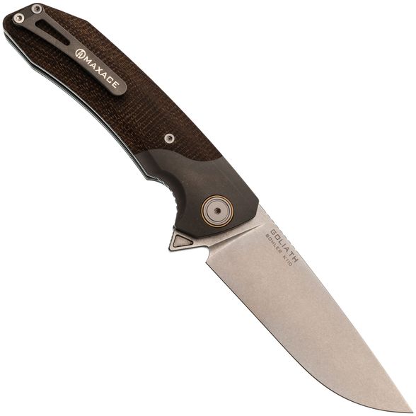Название Goliath идеально отражает суть этой модели от Maxace - это внушительный складной инструмент для тех, кто любит большие формы. Несмотря на свои размеры, он остаётся утончённым и удобным, а его премиальные материалы и продуманная эргономика делают его отличным выбором для повседневного ношения.