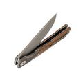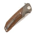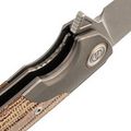 Складной нож Maxace Goliath Micarta, сталь Bohler K110 сочетает в себе классические и инновационные черты. Перед нами довольно крупный складной нож, который обладает клинком классического типа: прямой обух, высокие спуски и плавный подъем режущей кромки. За инновационную составляющую этого проекта отвечают крутые материалы, такие как холодно штампованная углеродистая сталь Bohler K110 и многослойная G10. На поверхность клинка нанесено защитное покрытие, что повышает уровень сопротивления к коррозии и внешним повреждениям. Среди интересных моментов стоит отметить обработку накладок на рукоять, благодаря чему композитный материал внешне очень похож на натуральное дерево. Притины рукояти выполнены из твердой нержавеющей стали.