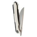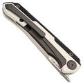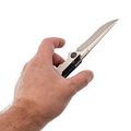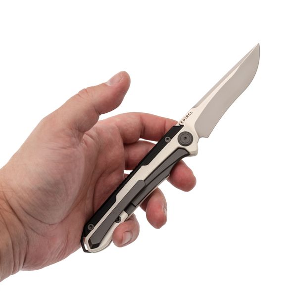 Клинок изготовлен из премиальной порошковой стали CPM MagnaCut, которая стала настоящим трендом в последние годы. Эта сталь обладает впечатляющим набором характеристик, включая высокую прочность, длительное удержание заточки и высокую коррозионную стойкость. CPM MagnaCut разработана специально для ножей, поэтому лишена лишних компонентов и нацелена на максимальную эффективность. Геометрия клинка также заслуживает внимания: стандартный Drop-Point дополняется наличием рекурвы. Рекурва удлиняет режущую кромку и стягивает разрезаемый материал в себя, что особенно удобно при работе с веревками или картоном.