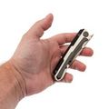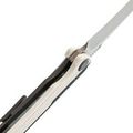 Рукоять не менее интересна, чем клинок. Она состоит из плашек G10 и интегрального алюминиевого бекспейсера, который придает рукояти ощущение монолитности и в то же время обеспечивает простоту разборки и сборки. Оба материала, используемых в рукояти, не боятся воды, что делает модель пригодной для использования в любых условиях. Еще одно интересное решение - замок, крепящийся к накладке из G10. Такая конструкция позволяет легко заменить замок в случае дефекта или по мере износа, обеспечивая длительную службу инструмента.