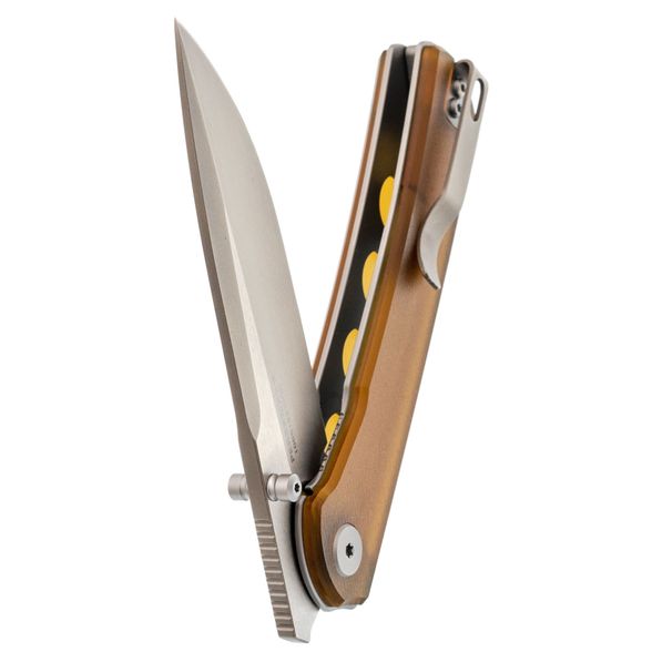 Рукоять ножа имеет стальную конструкцию с лайнерами, один из которых выполняет функцию замка. Накладки из термопластика PEI (Ultem) - это современный материал, который не боится влаги и температурных изменений, а также безопасен для использования с пищей. Рукоять с клипсой позволяет надежно прикрепить нож к одежде или снаряжению, обеспечивая удобство ношения. Maxace Peregrine - это надежный и функциональный инструмент, который станет отличным повседневным спутником.