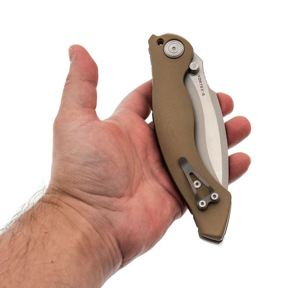 Одна из особенностей Vortex-S - наличие стопорного пина, который фиксирует нож в открытом положении превращая нож в фиксированный, гарантируя ещё большую прочность. Этот нож предназначен для решения серьезных задач.
