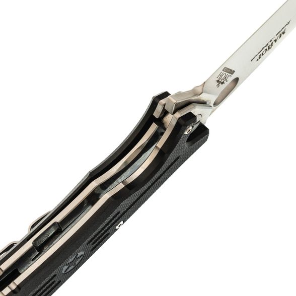 Нож Майор оснащен тройным замком Liner Lock, который обеспечивает надежное фиксирование клинка в открытом положении. Замок обладает прочностью и устойчивостью к воздействию влаги.