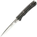 Рукоять ножа изготовлена из прочного и долговечного материала G10, который обладает амортизационными свойствами и обеспечивает хват даже в сложных условиях. Рукоять имеет эргономичную форму, подходящую для различных типов хвата, что делает нож удобным в использовании как для правшей, так и для левшей.