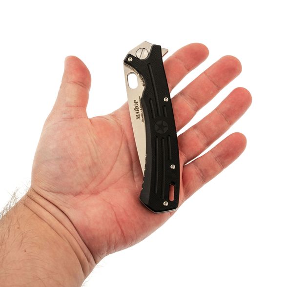 Представляем складной нож Майор, баланс стиля, функциональности и надежности. Этот нож станет дополнением арсенала в городе или на природе, благодаря тактическим возможностям и высокопрочным материалам.
