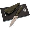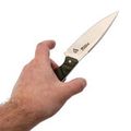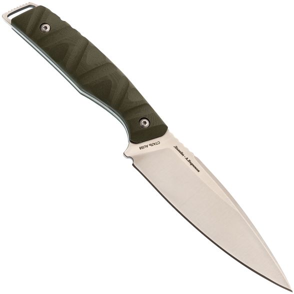 Клинок выполнен из стали AUS-8, которая отличается ударной вязкостью, устойчивостью к коррозии и простой заточкой. Эти свойства позволяют легко поддерживать его в рабочем состоянии даже в походных условиях. Высокие прямые спуски обеспечивают отличные режущие свойства и удобство при строгании. Профиль клинка Drop-Point универсален и подходит для выполнения большинства задач.