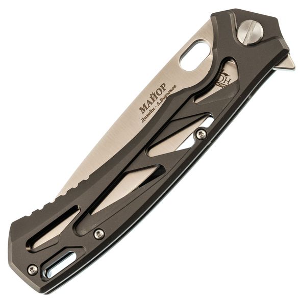 Майор- это исключительный складной нож с прочной и стильной титановой рукояткой. Острый, как бритва, клинок M390 длиной 107 мм - это надежный инструмент, который можно использовать для самых разных целей как в городских условиях, так и на природе. Механизм фрейм-лок обеспечивает надежную фиксацию лезвия во время использования. Его современный дизайн добавляет ему очарования, делая его не только ценным инструментом, но и красивым аксессуаром. Если вы хотите пополнить свою коллекцию или произвести впечатление на любимого человека или начальника, Maйор - отличный выбор. Сочетание прочности, функциональности и элегантности делает его ценным подарком, которым будут дорожить долгие годы.