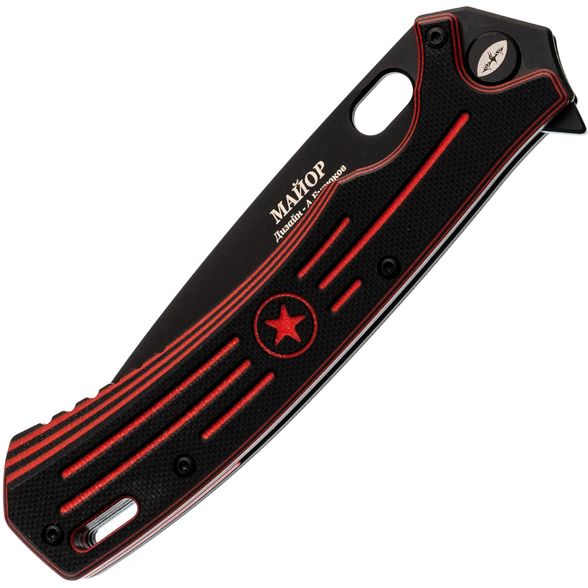 Нож НОКС Майор – крупное складное изделие отечественного бренда НОКС, предназначенное для активного использования в походах и повседневного ношения. Конструкция объединяет практичный дизайн и применение качественных материалов.
