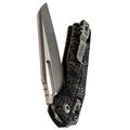 Для открытия Microtech MSI используется круглое отверстие в клинке, что позволяет открывать нож одной рукой. Также клинок можно быстро и легко привести в рабочее положение инерционно благодаря надёжному замку Ram-Lock — одному из самых прочных и стабильных механизмов на рынке.