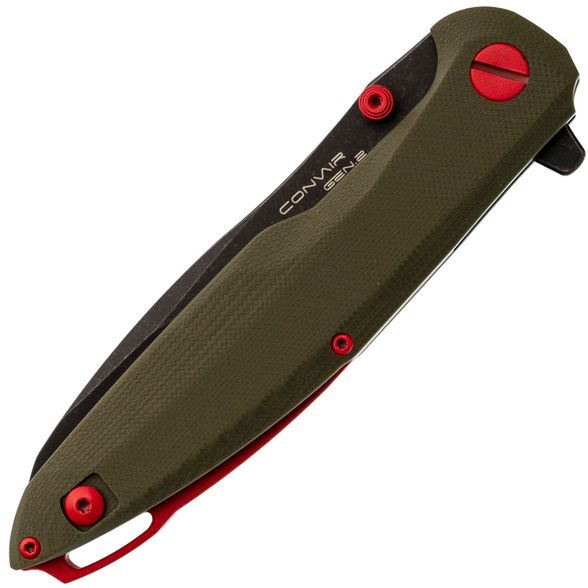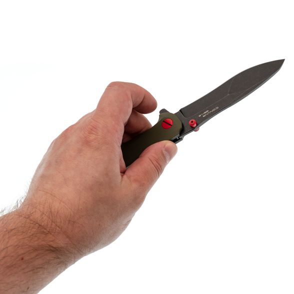 Клинок Convair Boba Fett LE выделяется своей комбинированной геометрией. Высокие спуски ближе к острию обеспечивают отличные режущие свойства и точность при работе с деликатными материалами. Более низкие спуски у основания клинка рассчитаны на силовые задачи и работу с плотными материалами. Открытие возможно двумя способами - за флиппер или шпеньки с каждой стороны, что делает процесс быстрым и интуитивным.