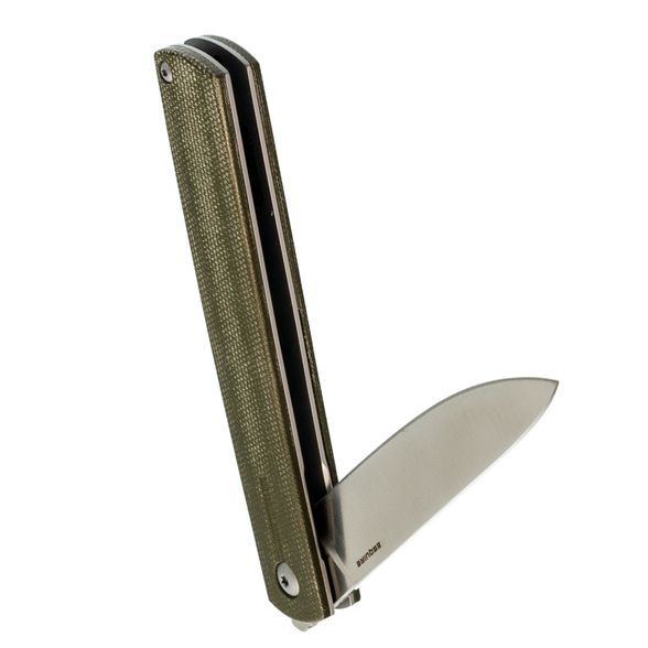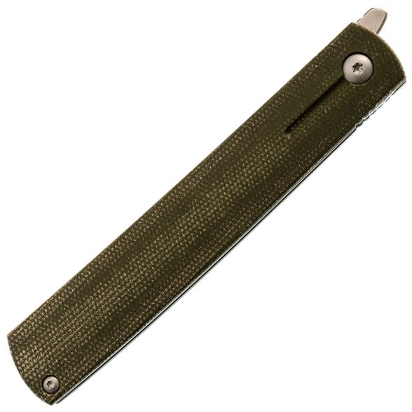 Рукоять не уступает клинку в изяществе благодаря своим плавным линиям и изогнутой форме. Она удобно лежит в руке, обеспечивая комфорт и контроль. Накладки рукояти изготовлены из микарты — прочного полимерного материала, который не боится воды, ударов и других повседневных нагрузок. Отсутствие клипсы подчеркивает джентльменский стиль: ведь настоящие джентльмены не носят ножи на брюках.
