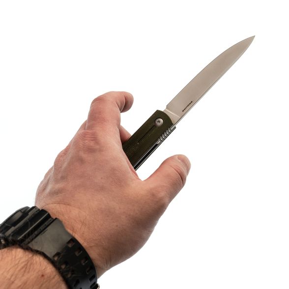 Клинок у модели длинный, узкий и изящный, словно перо для письма. Его длина обеспечивает многофункциональность, а прямые спуски и сталь D2 гарантируют отличные режущие качества. D2 — это высокоуглеродистый сплав, который позволяет реже точить инстурмент даже при интенсивном использовании. Благодаря своим характеристикам, клинок станет надежным инструментом в любых ситуациях.