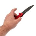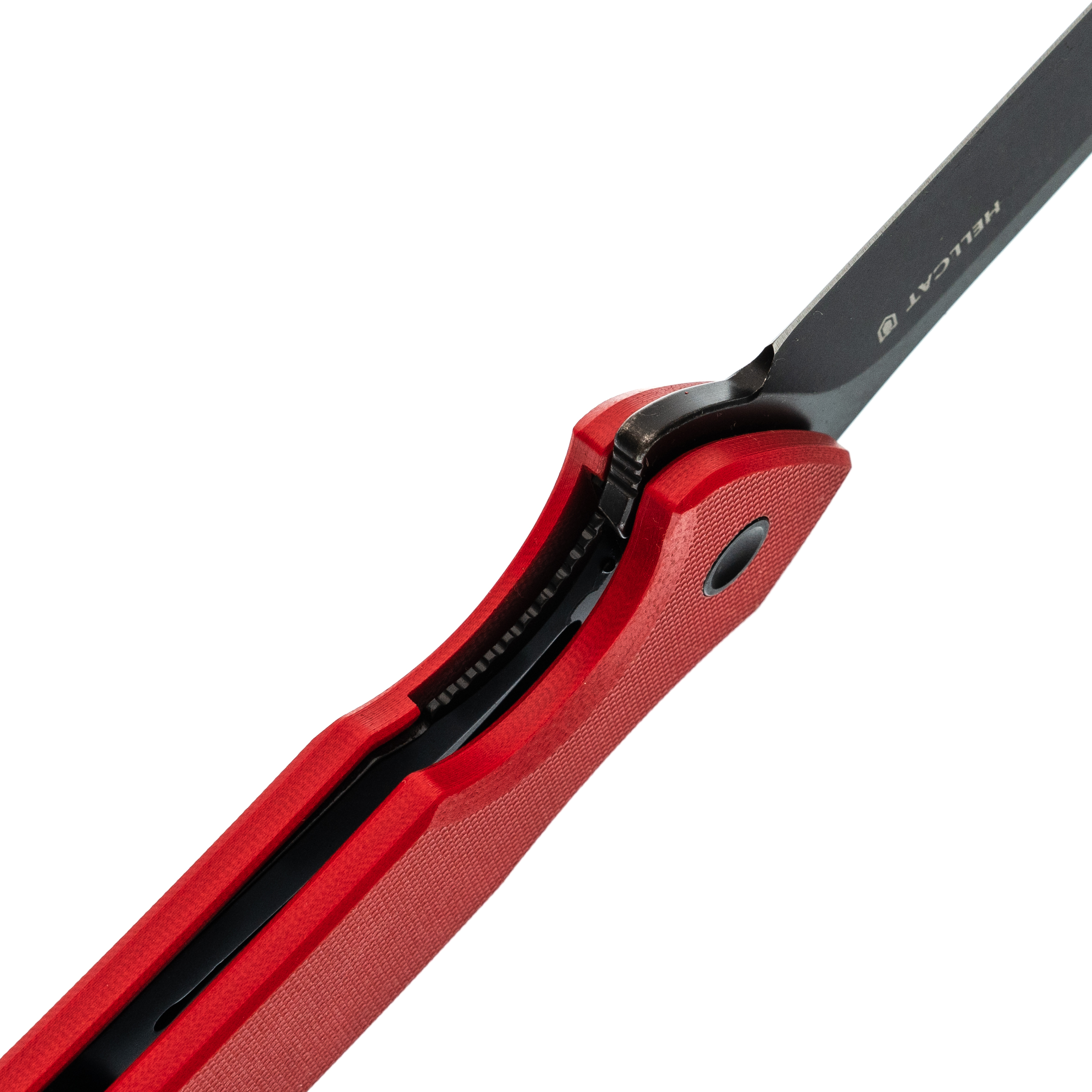 Главное в клинке Hellcat - это его высокие спуски. Они делают геометрию лезвия тонкой, а значит, нож будет резать, а не рвать материал. Drop-Point - это форма на все случаи жизни. Крепкое острие не отломится, если вы решите поддеть им крышку люка или строгать сухую палку. Длина клинка позволяет резать хлеб или батон на весу.