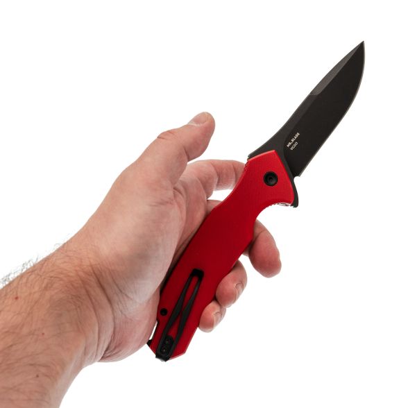 Рукоять с плавными изгибами и выемкой под палец - классика удобства. Замок Liner-Lock тут стоит крепкий, с хорошей площадью контакта. Флиппер служит не только для открывания, но и дополнительной гардой. Клипса надежно фиксирует нож в кармане, не болтается. Есть темлячное отверстие в хвостовике. В собранном состоянии нож не люфтит, клинок ходит плавно. Инструмент готов к работе сразу после распаковки.