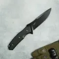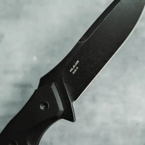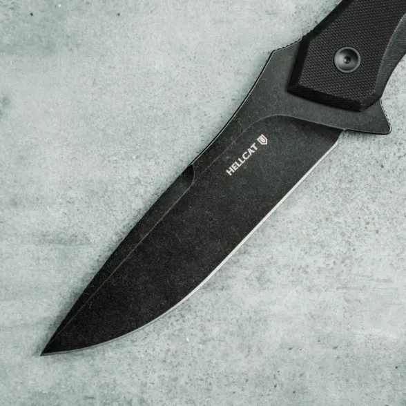 Клинок Hellcat CQB выполнен из популярной стали AUS-8, обеспечивающей баланс характеристик: высокой ударной вязкости, коррозионной стойкости и простоты заточки. Это делает нож максимально удобным в уходе даже в сложных условиях. Геометрия клинка осталась такой же выдающейся, как у складного варианта – прямые высокие спуски гарантируют отличные режущие свойства и точность строгания, а обух толщиной 3,5 мм добавляет надёжности. Покрытие Black Stonewash не только увеличивает коррозионную стойкость, но и предотвращает блики, делая нож менее заметным.