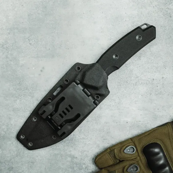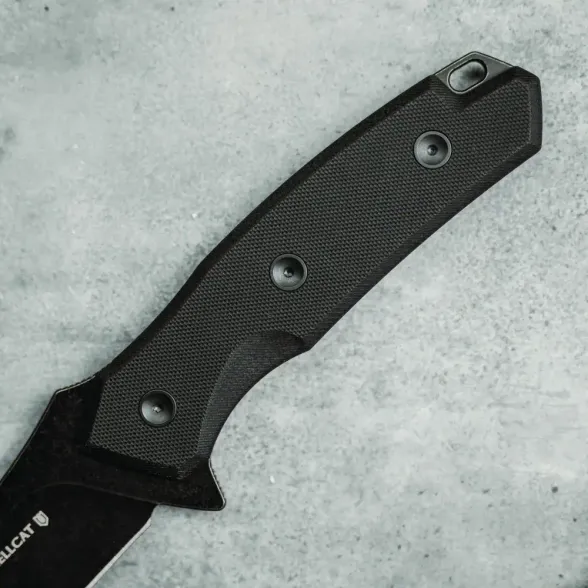 Рукоять Hellcat CQB выполнена по технологии Full-Tang, что значительно повышает её прочность и надёжность. Накладки изготовлены из стеклотекстолита G10 – материала, известного своей прочностью, лёгкостью и устойчивостью к внешним воздействиям. Эргономичная форма рукояти обеспечивает уверенное удержание ножа в любой ситуации, снижая вероятность выскальзывания даже при интенсивной работе.