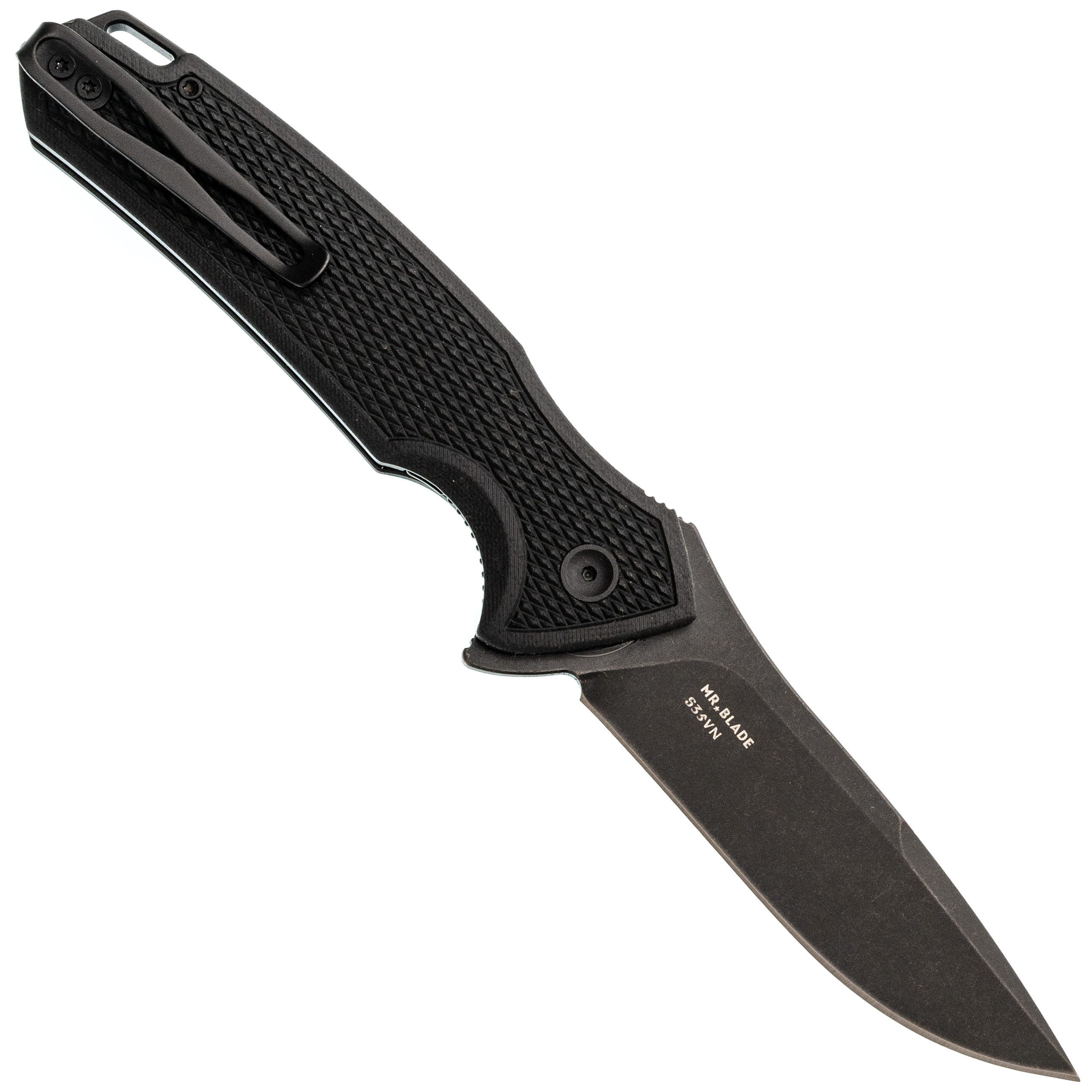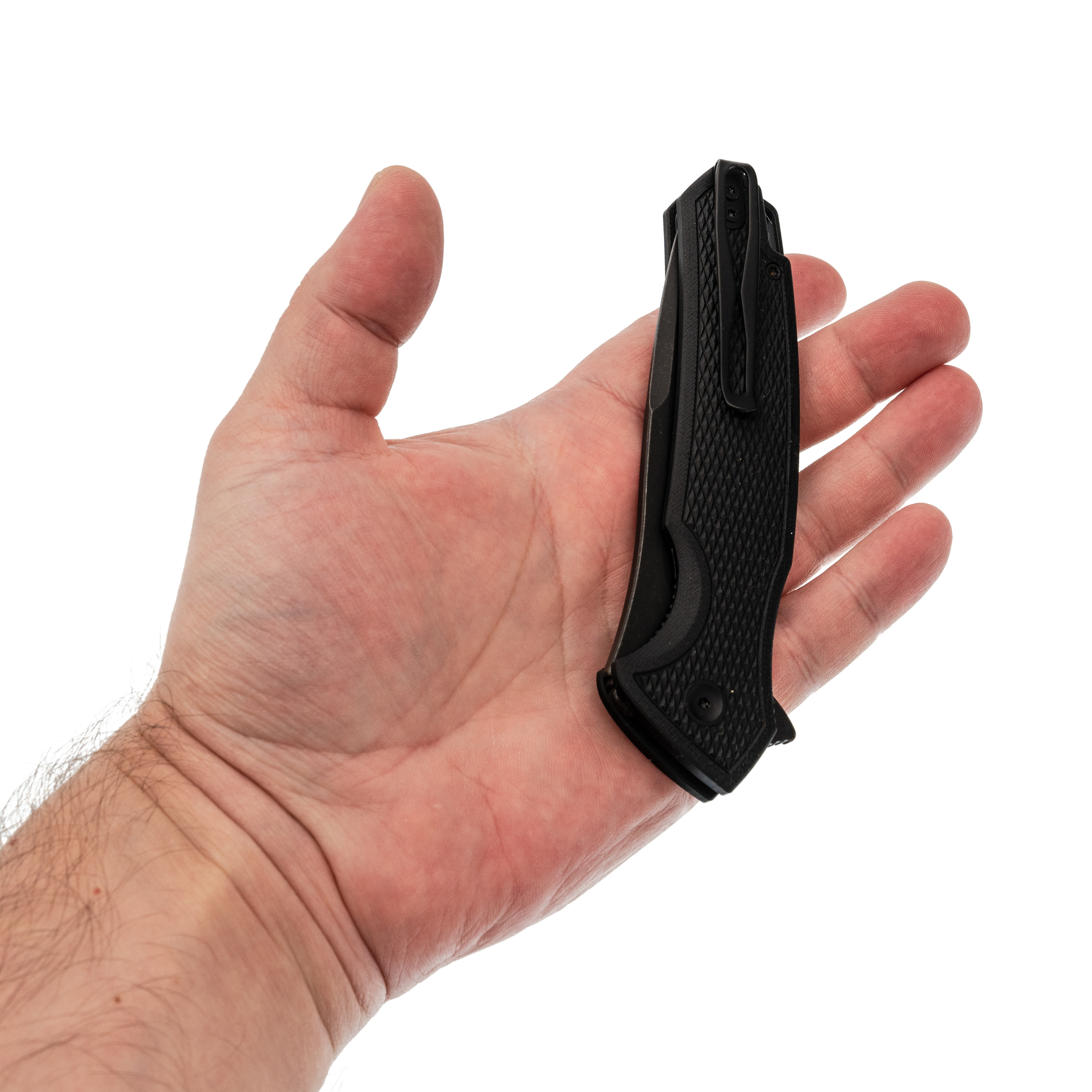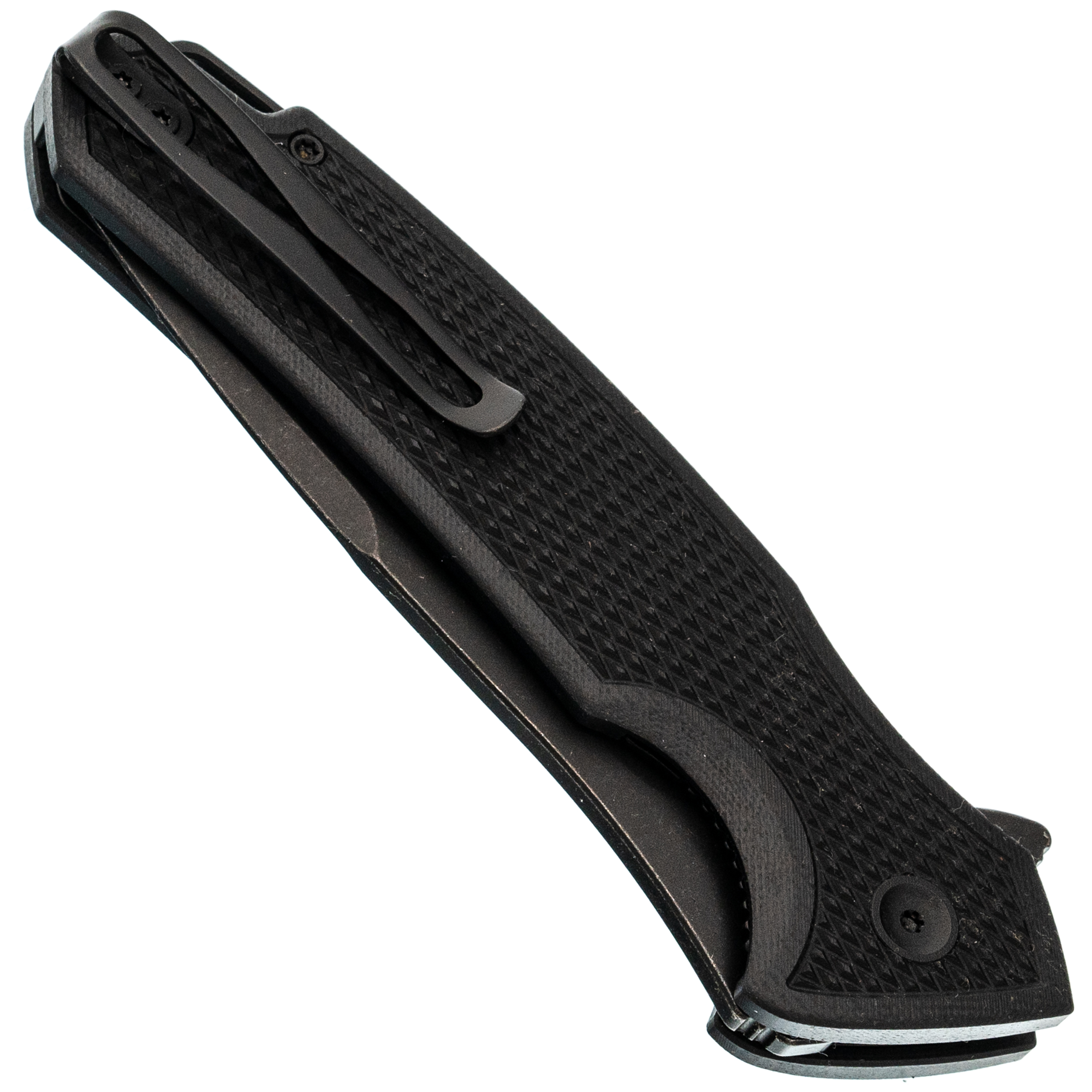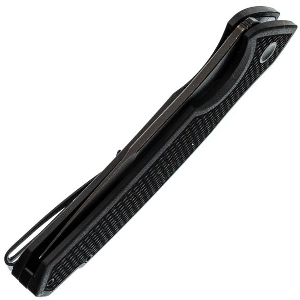 - Накладки из G10. Материал спрессован под высоким давлением, потому он плотный и тяжёлый. Не впитывает влагу, не расслаивается. Текстура выбрана такая, что нож не выскальзывает, даже если руки вспотели или вы в перчатках.