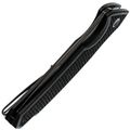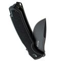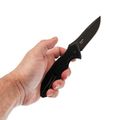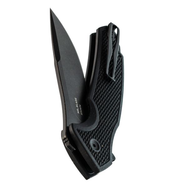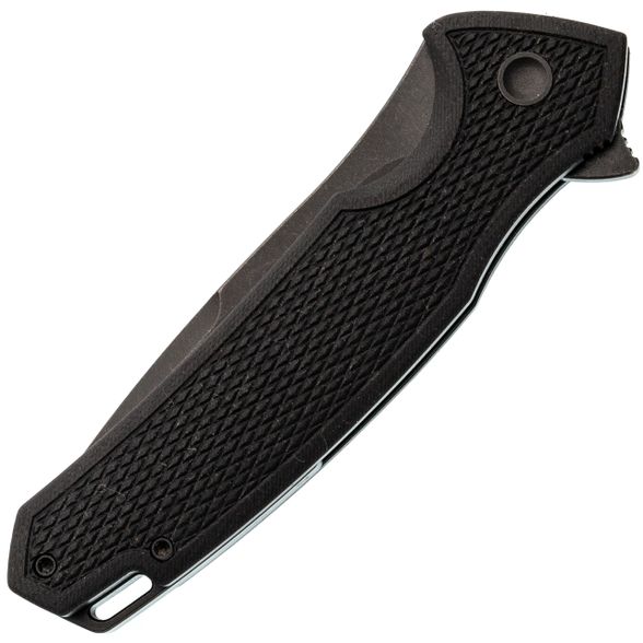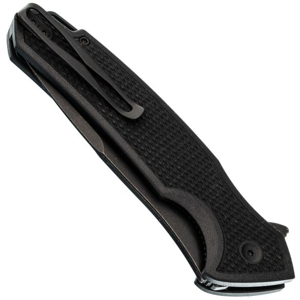 Профиль Drop-Point здесь с довольно массивным обухом, что добавляет прочности всему клинку. Высокие спуски начинаются почти от самого обуха - за счёт этого нож отлично режет, а не разрывает материал. Флиппер выполняет двойную роль: это и упор для пальца при открывании, и небольшая гарда, защищающая руку.
