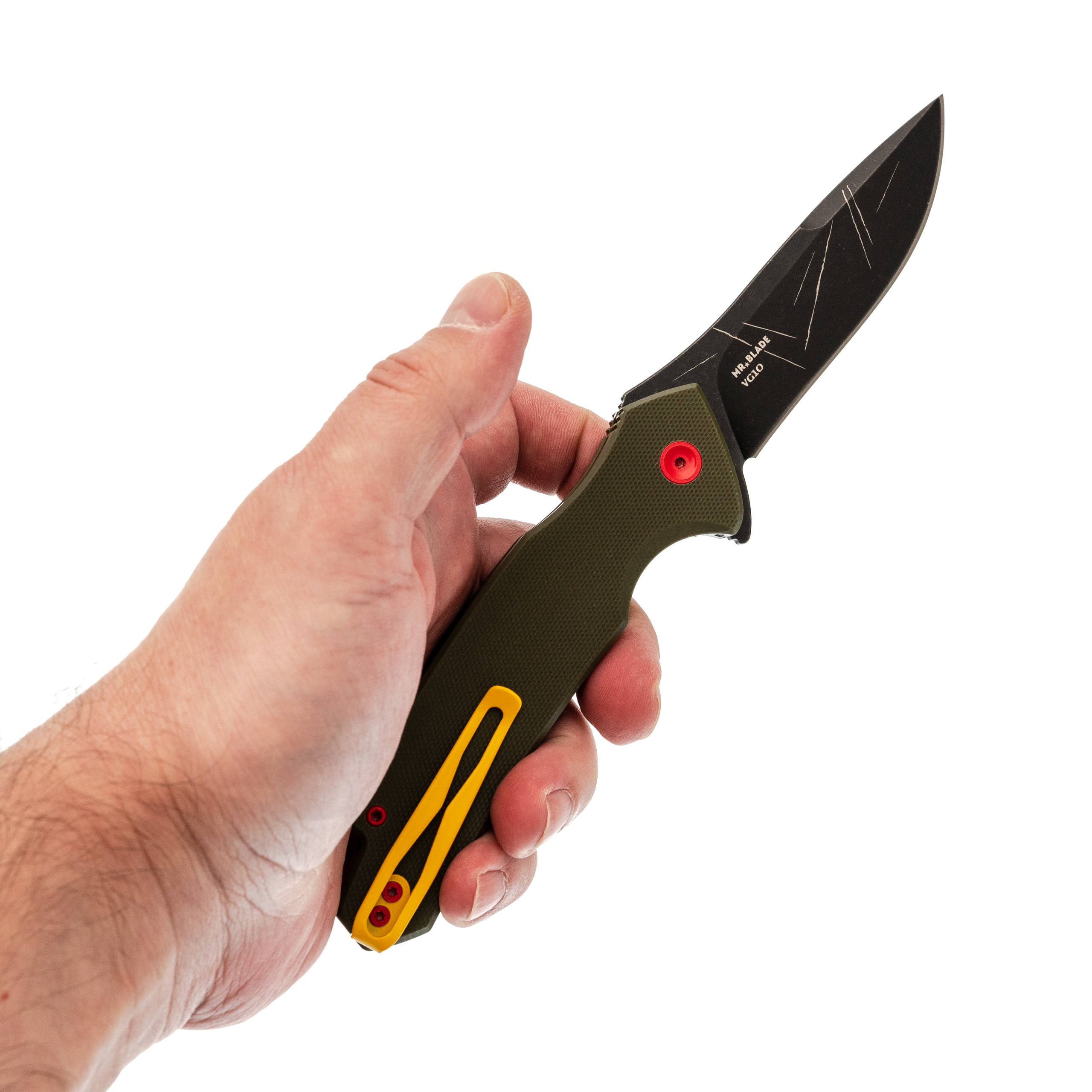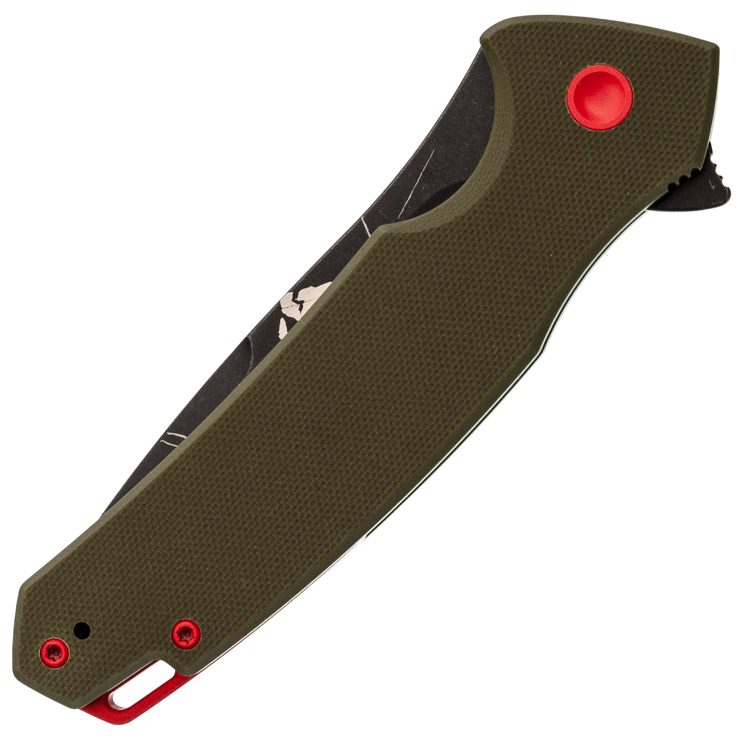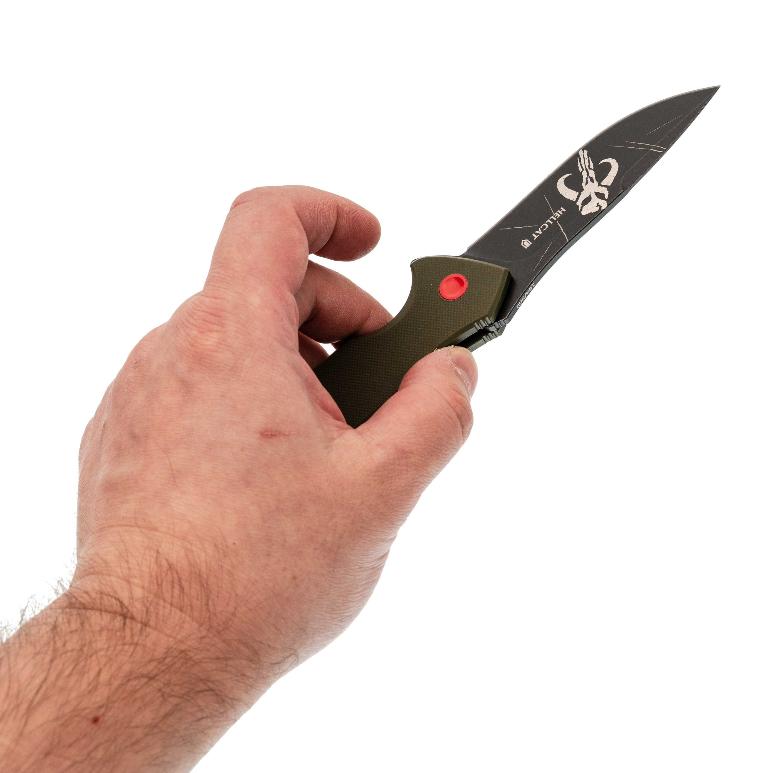 Нож Hellcat Mini от Mr.Blade получился на удивление универсальным. Несмотря на приставку Mini в названии, это полноразмерный рабочий инструмент, который одинаково хорошо чувствует себя в городской среде и в походных условиях. Его разработал известный мастер Алексей Дегтярёв, и сразу видно - форму выверяли по руке. В этом варианте нож получил запоминающуюся расцветку в стилистике шлема Бобы Фетта из Звёздных Войн: характерные зелёно-красные акценты создают настроение и выделяют нож из общей массы.