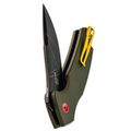 - Рукоять из G10. Это стеклотекстолит, который не боится воды, масла или перепадов температур. На ощупь он чуть шершавый, но не наждачный - лежит в ладони мёртво, не скользит даже в мокрой руке. Жёсткость материала гарантирует, что рукоять не разболтается со временем.