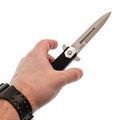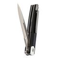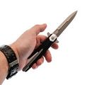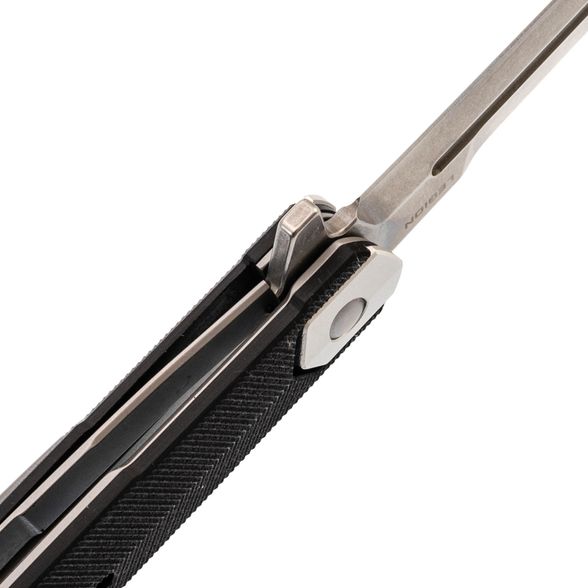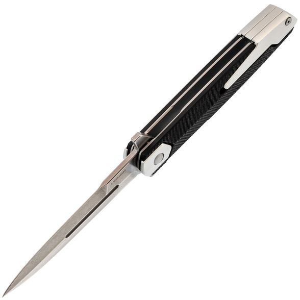 Mr.Blade Legion (арт. MB378-D2SW/BK) – это инструмент, который сочетает в себе космический дизайн и функциональные возможности, готовый к выполнению повседневных задач. Его клинок изготовлен из стали D2, известной своей твердостью и долгим удержанием режущей кромки. Эта сталь обеспечивает агрессивный рез и исключительную прочность, хотя требует небольшого ухода, чтобы избежать питтинга. Лезвие имеет кинжальную форму, что делает этот нож идеальным для проникающих действий. Для выполнения основных городских задач, таких как открытие упаковок, он также подходит превосходно.