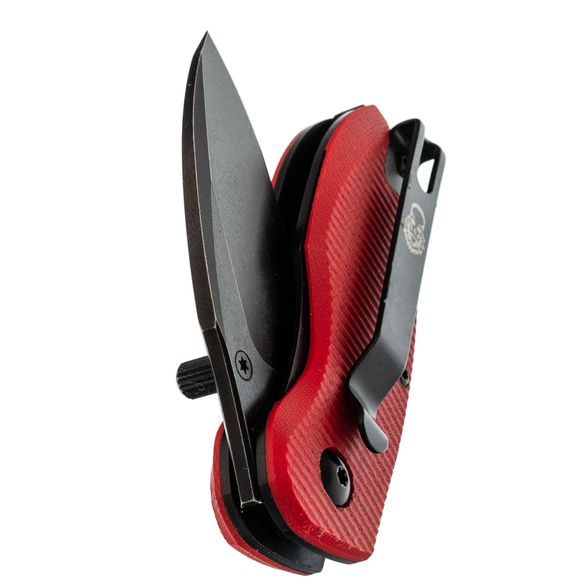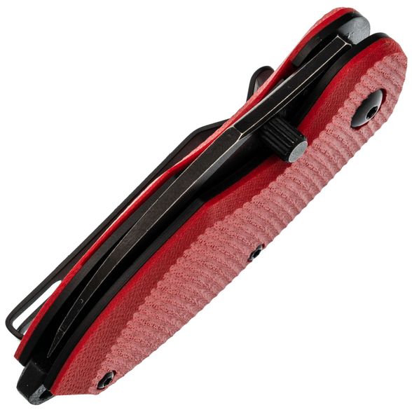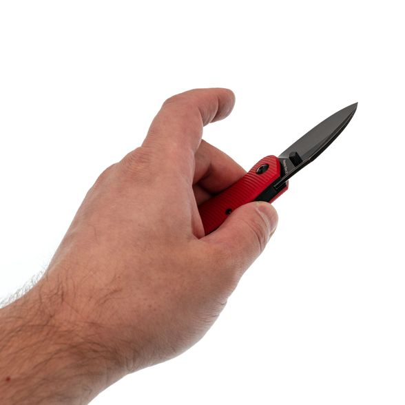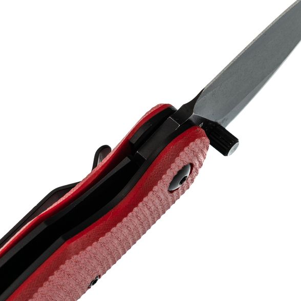 G10 - основа прочной рукояти. Красный G10 отличается не только насыщенным цветом, который гармонирует с чёрным клинком, но и отличными эксплуатационными качествами: материал не впитывает влагу, устойчив к ударам и износу, а также комфортен для хвата в любую погоду.
