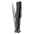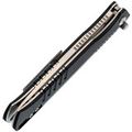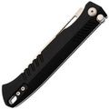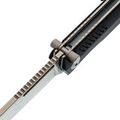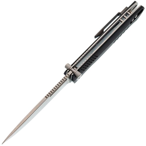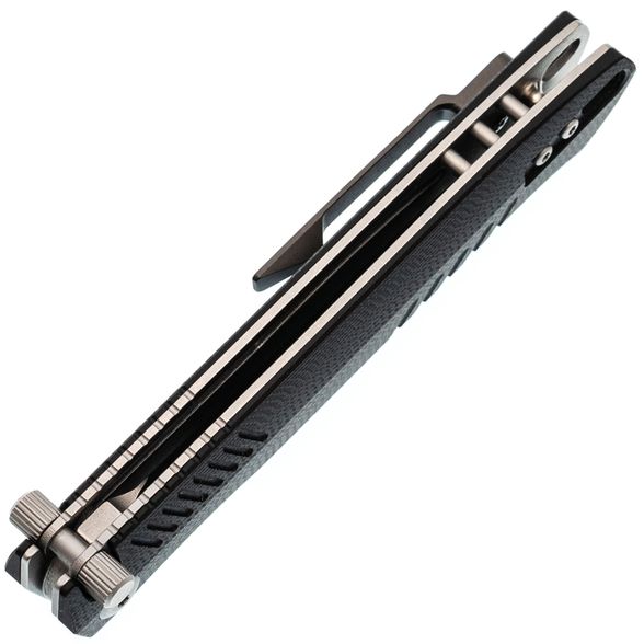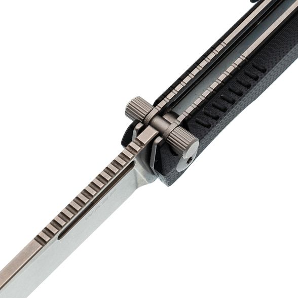 Замковый механизм. Конструкция напоминает Scorpion-Lock - интуитивно понятная, безопасная и устойчивая к нагрузкам. Может фиксироваться дополнительно при нажатии, повышая жёсткость удержания клинка.