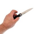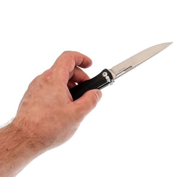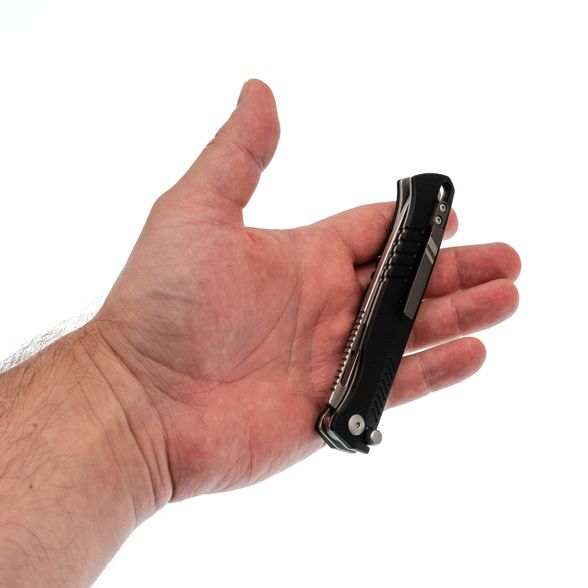 Простая, но надёжная форма рукояти делает Mr.Blade Wasp удобным в использовании как в перчатке, так и голой рукой. Фрезеровка по бокам обеспечивает уверенное удержание и контроль при любой погоде. Цельнофрезерованная клипса не мешает хвату и при этом легко адаптируется под предпочтения пользователя. Наличие крупного отверстия для темляка - практичное решение для походных условий или крепления на снаряжение.