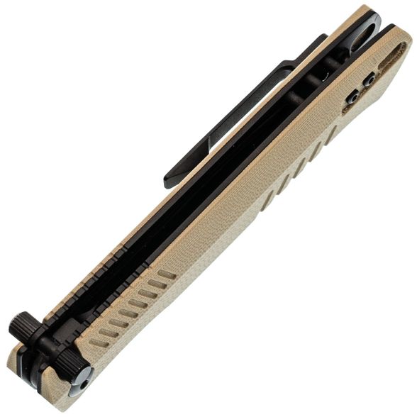 Форма рукояти сбалансирована между минимализмом и эргономикой. Она уверенно ложится в руку, не создавая лишнего напряжения при работе. Текстурированная поверхность с фрезеровкой улучшает сцепление и защищает от выскальзывания. Конструкция рассчитана на длительное использование без утомления, а съёмная клипса и темлячное отверстие делают нож удобным в транспортировке и хранении.