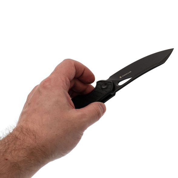 Лезвие изготовлено из стали AUS-8, которая характеризуется превосходной коррозионной стойкостью, высокой ударной вязкостью и простотой заточки – что делает её идеальной для рабочих задач. Нож имеет профиль модифицированного Wharncliffe, который удобен для точечной работы кончиком и строгания. Его можно открыть как с помощью флиппера, так и через отверстие в клинке. Высокие прямые спуски способствуют отличному резу, а подшипники в осевом узле обеспечивают быстрое и плавное открывание.