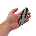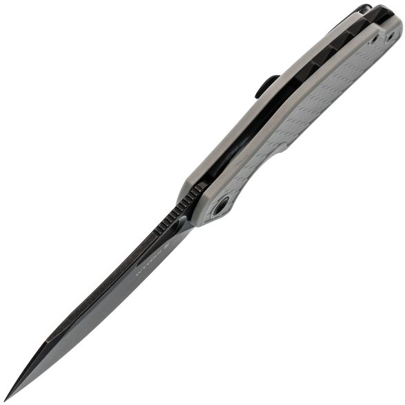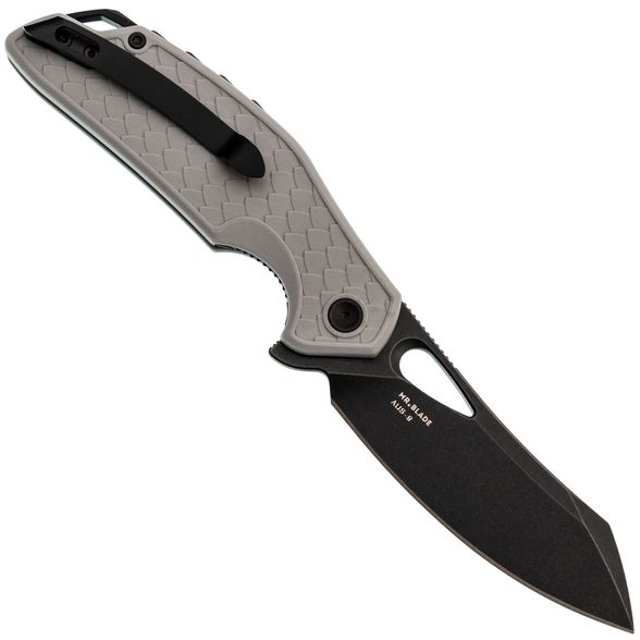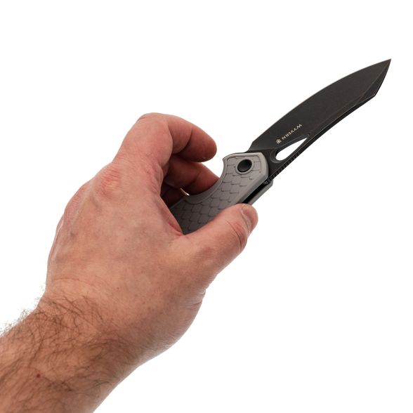 Клинок выполнен из стали AUS-8, обладающей отличным сопротивлением к коррозии, высокой ударной вязкостью и лёгкостью в заточке – идеальным выбором для рабочего ножа. Нож имеет профиль модифицированного Wharncliffe, который обеспечивает удобство при работе кончиком и строгании. Открытие лезвия осуществляется как с помощью флиппера, так и через отверстие в клинке. Высокие прямые спуски гарантируют превосходный рез, а подшипники в осевом узле обеспечивают быструю и плавную работу механизма.