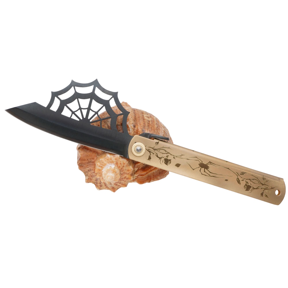 Складной нож Nagao Higonokami Aranea - Spider, 100мм, сталь Aogami Black, рукоять латунь