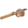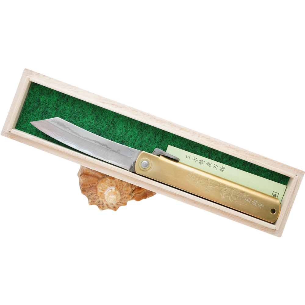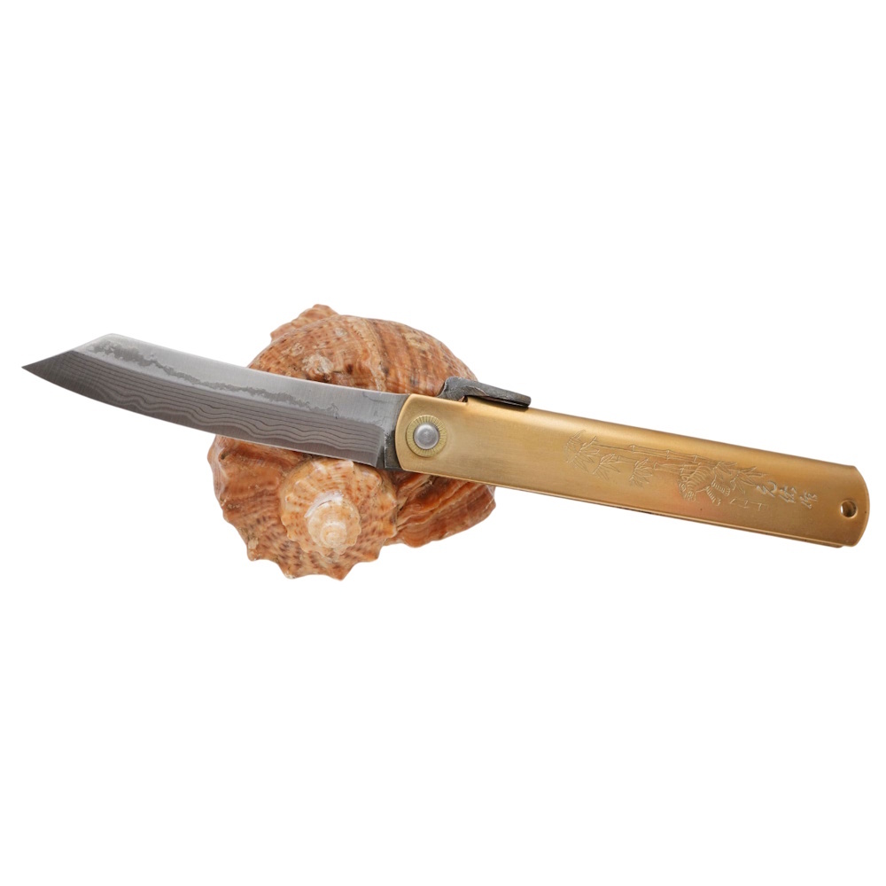 Складной нож Nagao Higonokami Damascus hand forging, 100мм, сталь Aogami, рукоять латунь