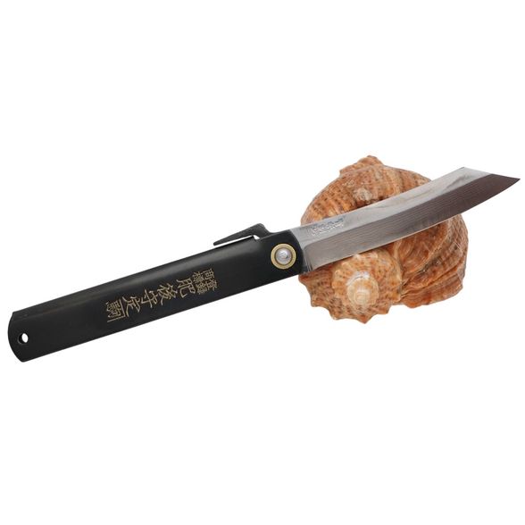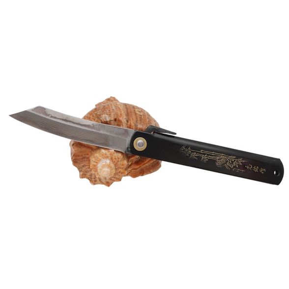 Удерживается в открытом состоянии большим пальцем руки за специальный выступ на лезвии - тикири