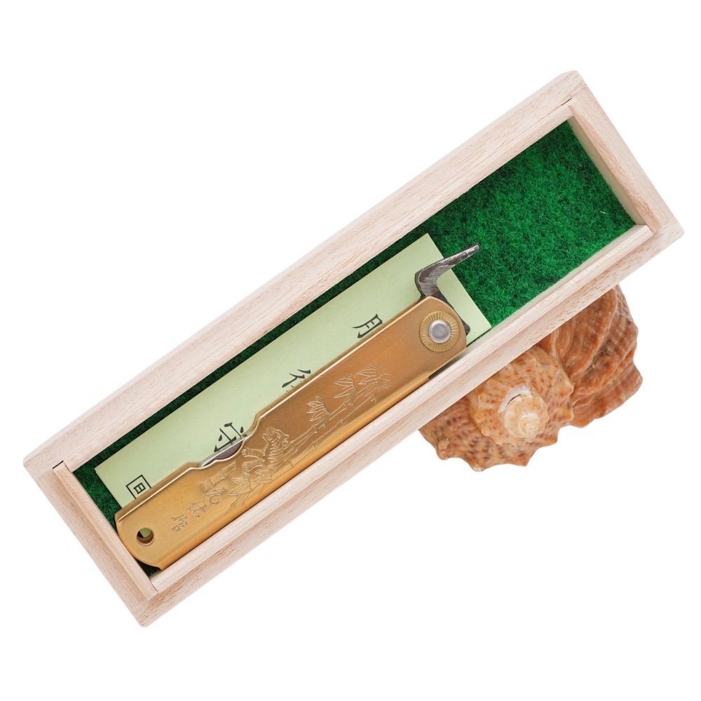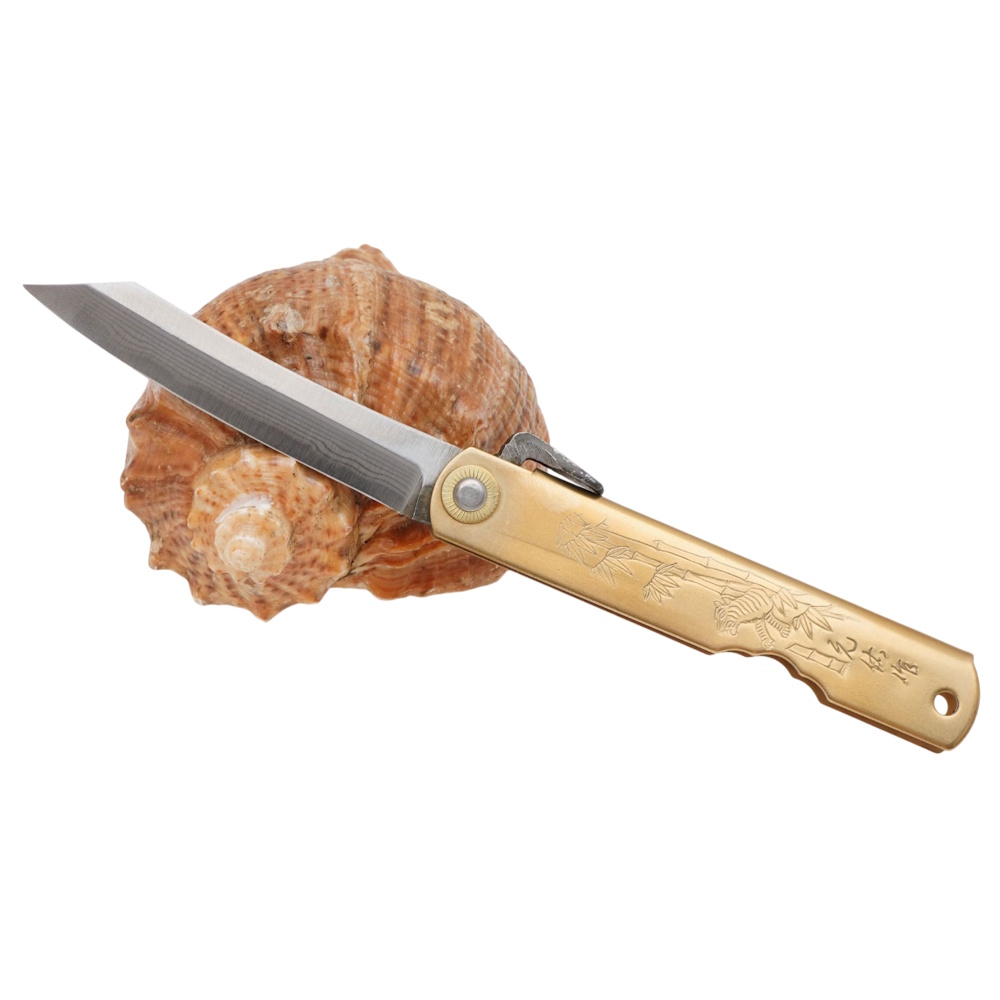 Складной нож Nagao Higonokami Damascus hand forging, 80мм, сталь Aogami, рукоять латунь