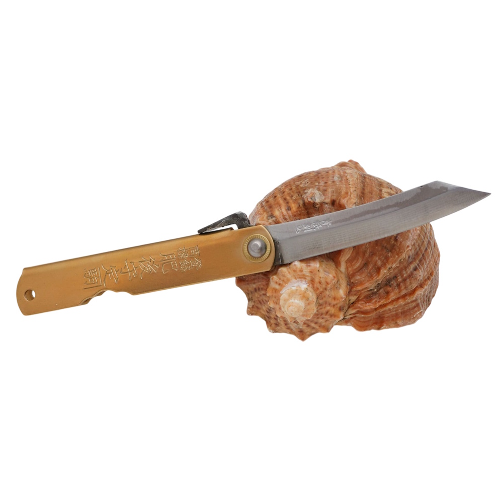 Удерживается в открытом состоянии большим пальцем руки за специальный выступ на лезвии - тикири