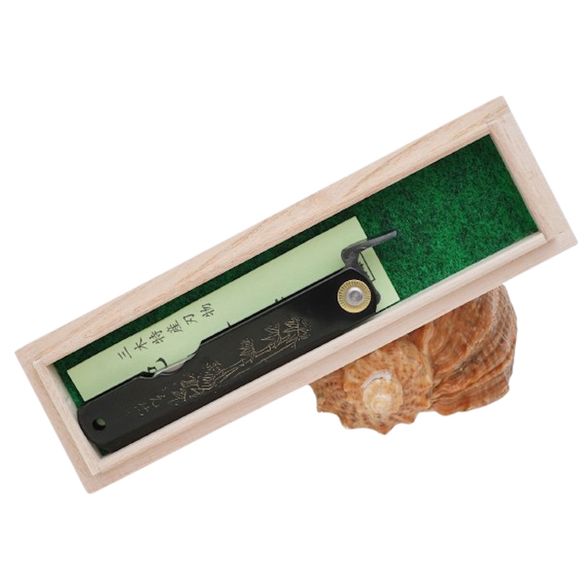 Удерживается в открытом состоянии большим пальцем руки за специальный выступ на лезвии - тикири