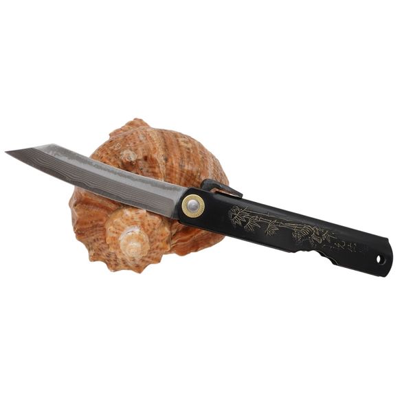 Складной нож Nagao Higonokami Damascus hand forging, 80мм, сталь Aogami, рукоять металл, черный