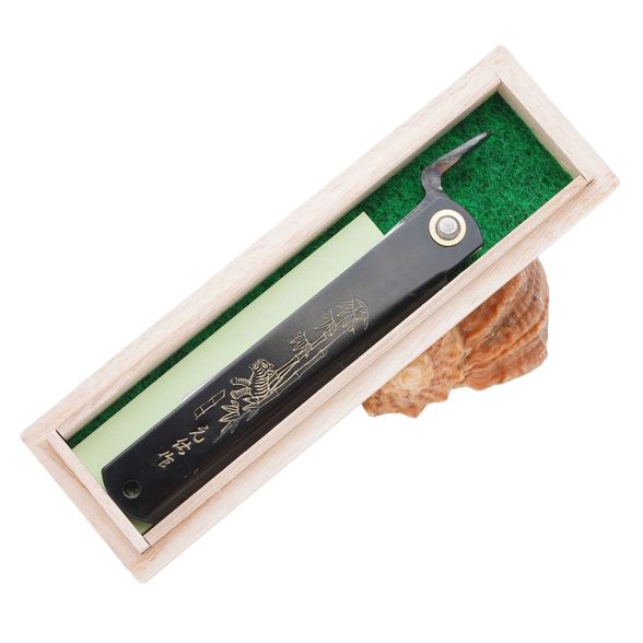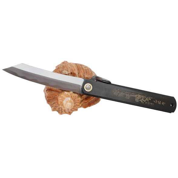 Удерживается в открытом состоянии большим пальцем руки за специальный выступ на лезвии - тикири