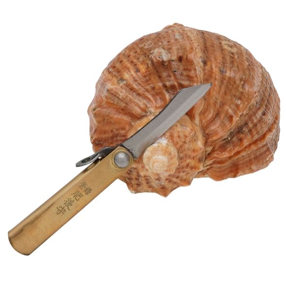 Складной нож Nagao Higonokami Mame Miniature, 40мм, сталь SK-5, рукоять латунь, без чехла