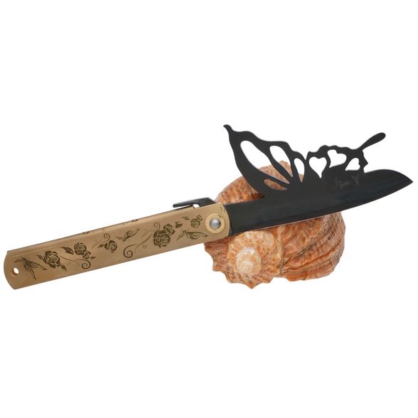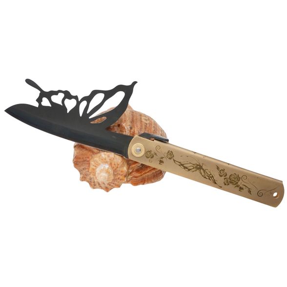 Складной нож Nagao Higonokami Papilio - Butterfly, 100мм, сталь Aogami Black, рукоять латунь