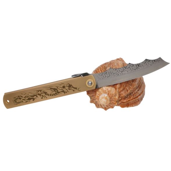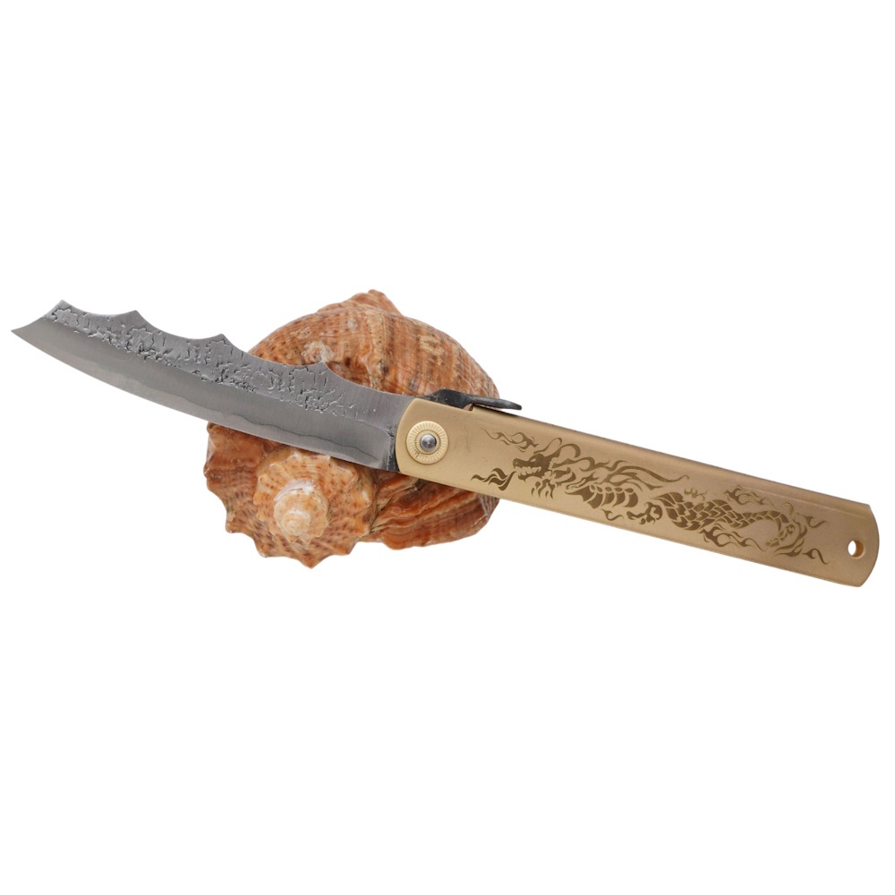 Складной нож Nagao Higonokami Ryubu - Dragon, 100мм, сталь Aogami, рукоять латунь