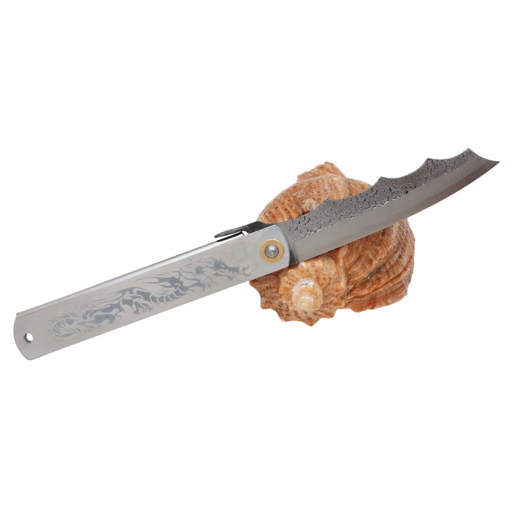 Складной нож Nagao Higonokami Ryubu - Dragon, 100мм, сталь Aogami, рукоять металл