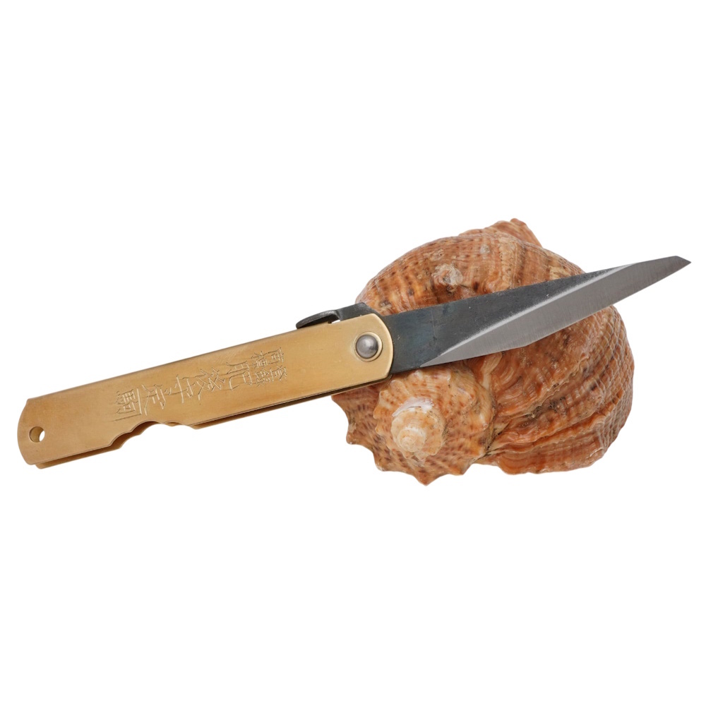 Складной нож Nagao Higonokami Single bevel, 70мм, сталь Aogami, рукоять латунь