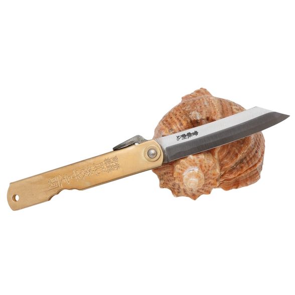 Складной нож Nagao Higonokami Special made forging, 80мм, сталь Aogami, рукоять латунь