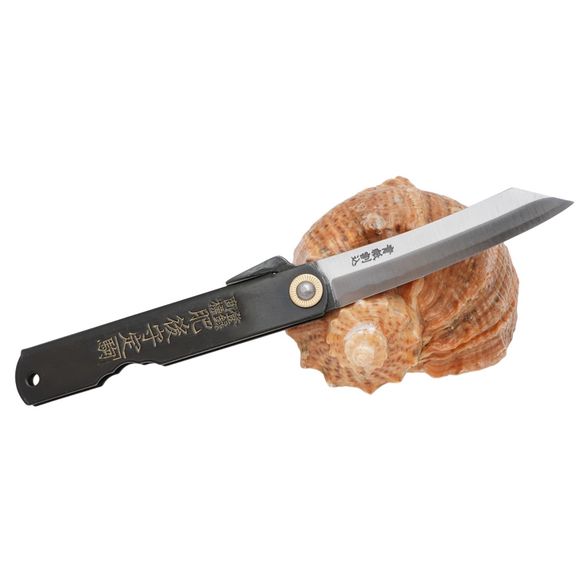 Удерживается в открытом состоянии большим пальцем руки за специальный выступ на лезвии - тикири