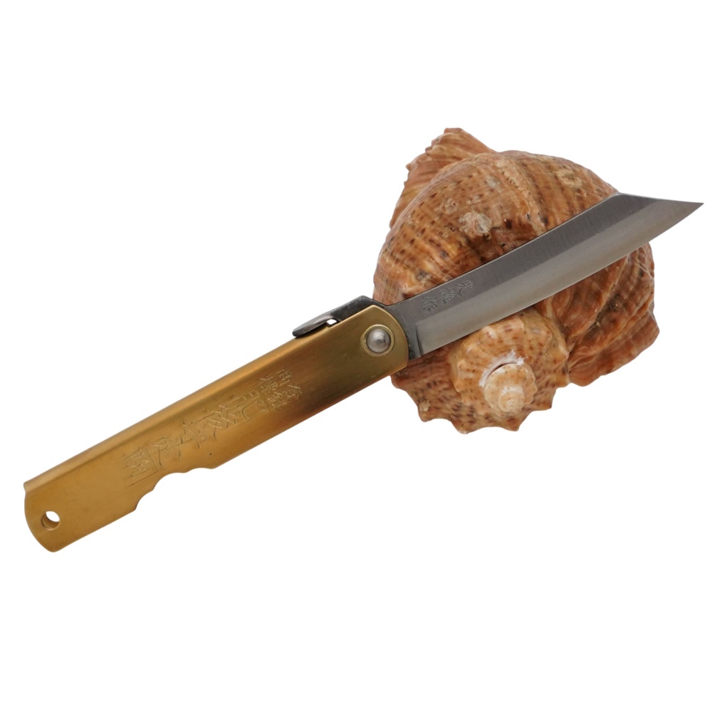 Складной нож Nagao Higonokami Warikomi Mitsuo, 80мм, сталь Aogami, рукоять латунь