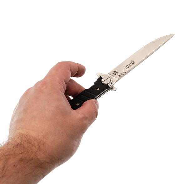 Клинок изготовлен из немецкой нержавеющей стали Nitro-V, которая обеспечивает отличное сочетание коррозионной стойкости и высокой твёрдости. По сравнению с предыдущей моделью, клинок стал тоньше на 1 мм, а спуски стали выше, что положительно влияет на режущие свойства ножа. Упор с одной стороны выполняет функцию плавника, а с другой - вэйва, позволяя легко открывать нож одной рукой об карман.
