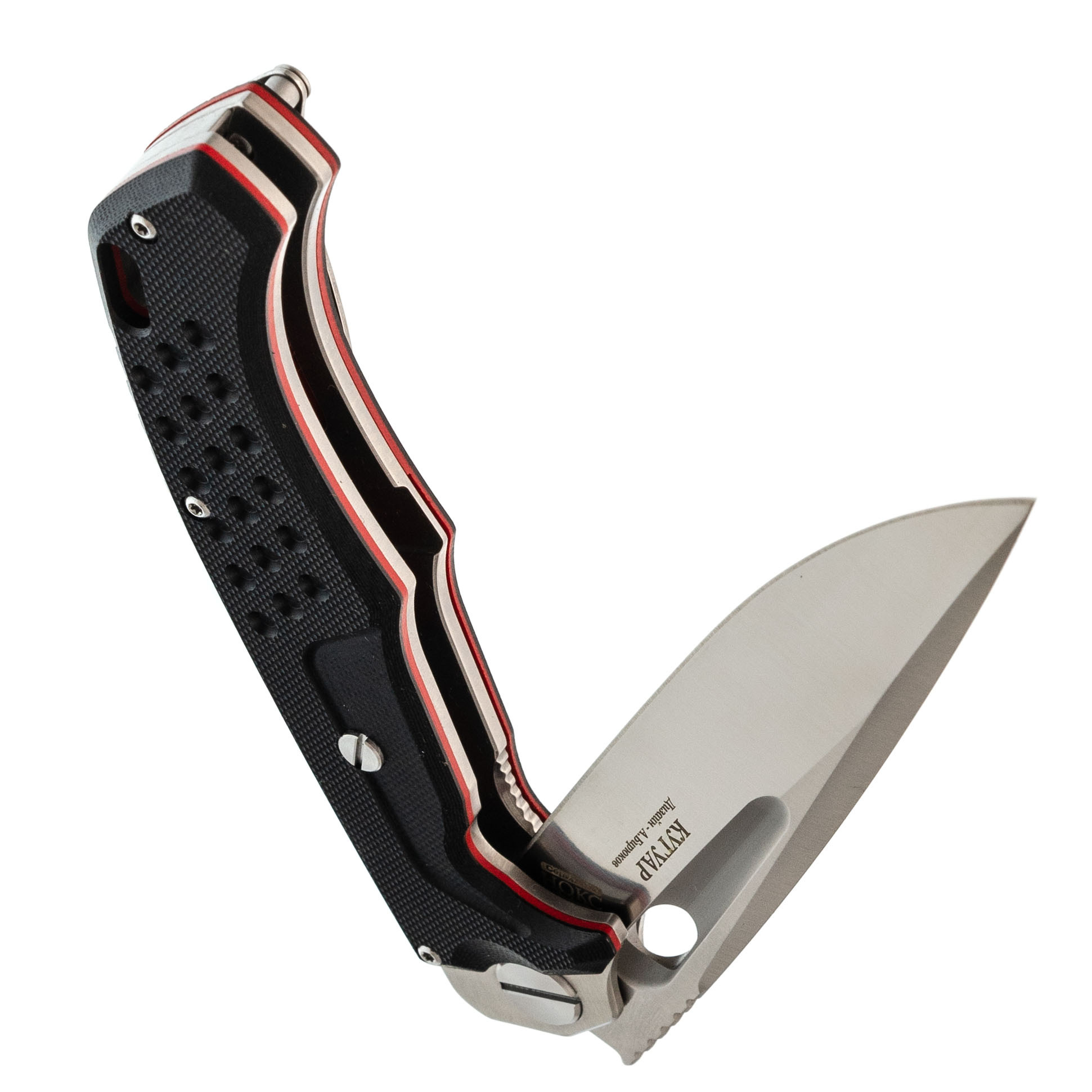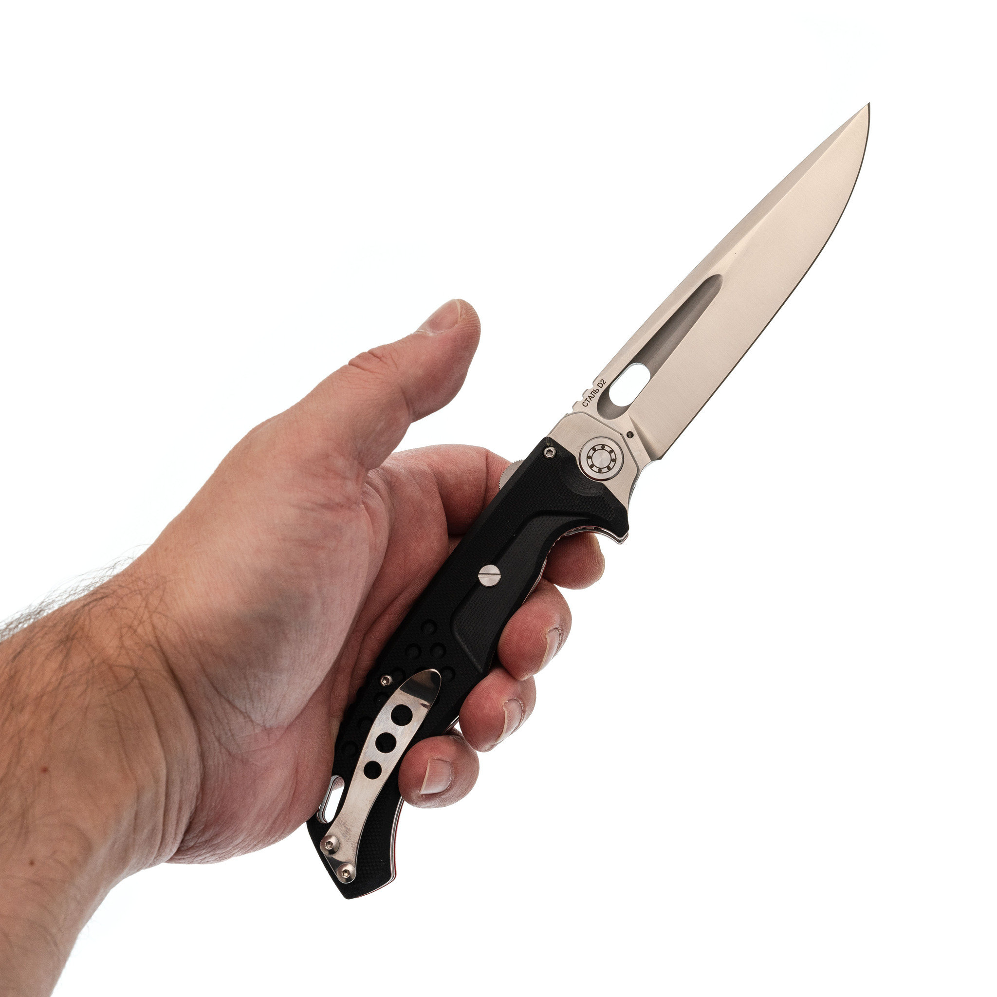 G10: Прочный и лёгкий материал, который идеально подходит для рукоятей. G10 выдерживает любые внешние воздействия и сохраняет свою форму, независимо от температуры или влажности. Это делает рукоять не только долговечной, но и комфортной для долгого использования.
